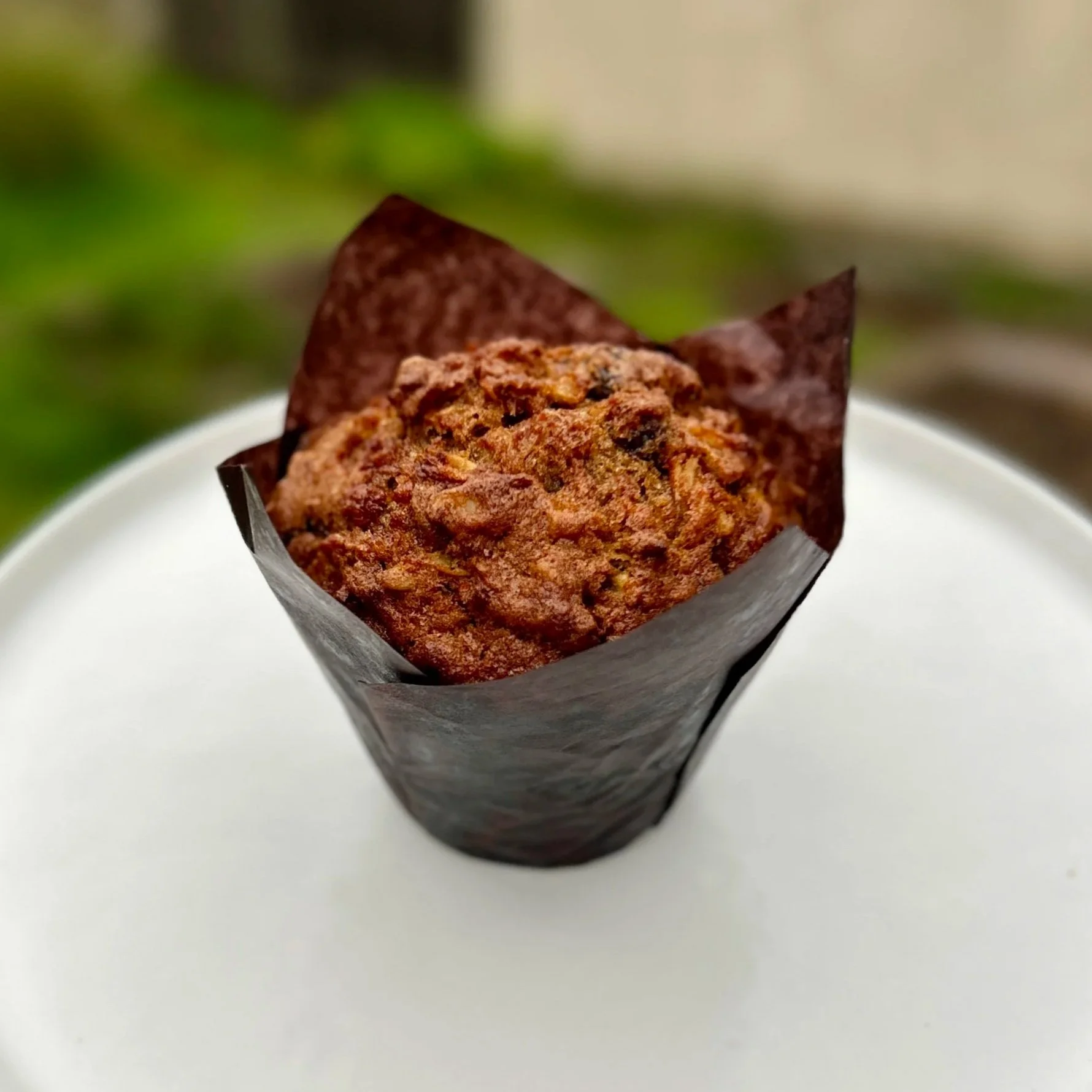 A hearty, healthful muffin that doesn’t sacrifice on flavor or texture. Choc full of sweet but healthy apples, carrots, and raisins, walnuts, earthy sunflowers seeds, and shredded coconut for texture.