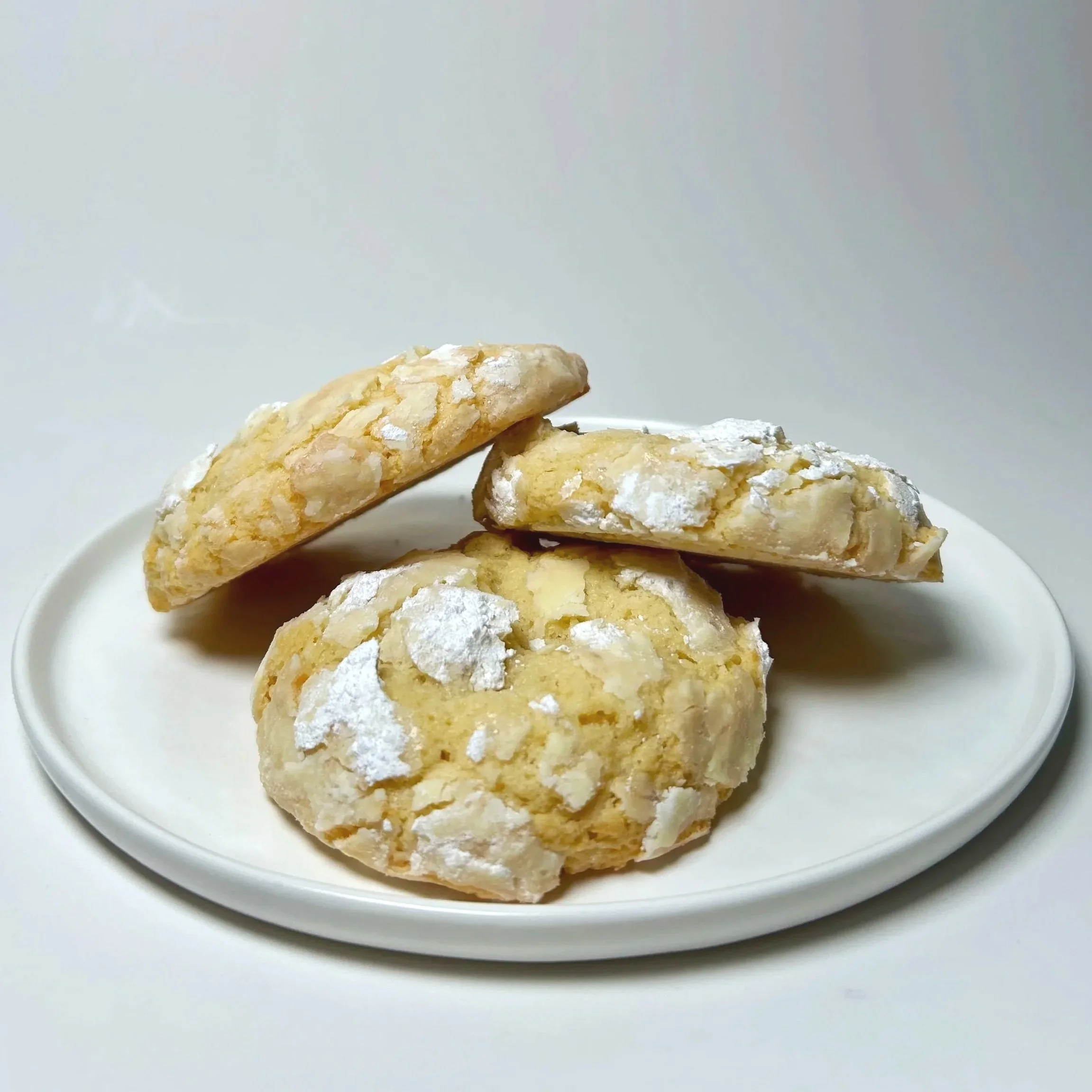 A chewy, lemony cookie full of lemon zest and juice. Finished with a dusting of powdered sugar.